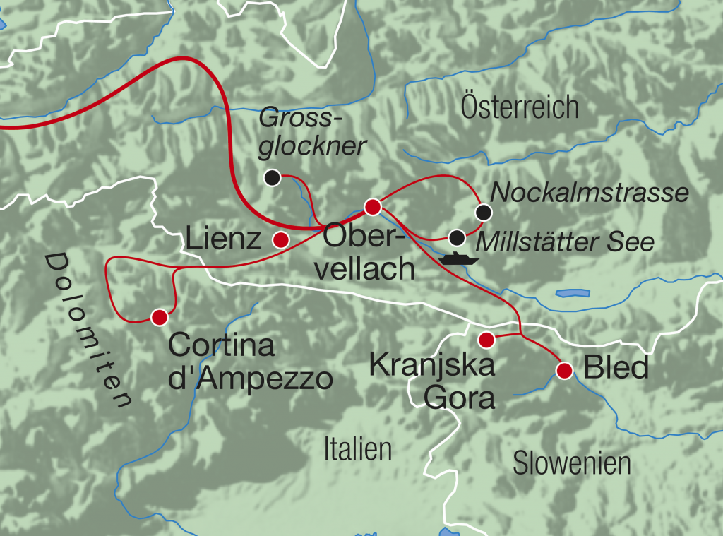 Tauchen Sie ein in eine Bilderbuchlandschaft: mächtige Berge, liebliche Seen, gemütliche Dörfer und freundliche Menschen. Unweit von Italien und Slowenien gelegen, ist Obervellach ein idealer Ausgangsort für Ausflüge in die verschiedenen Regionen und Kulturen. Die Fahrt auf der eindrucksvollen Grossglockner Hochalpenstrasse darf sicher als einer der Höhepunkte dieser Reise genannt werden. Lassen Sie sich in eine eindrückliche Gebirgswelt entführen!